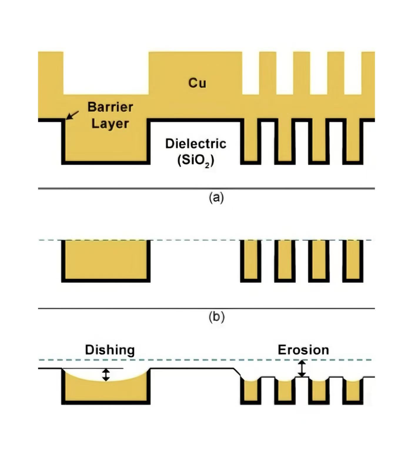 Η χημική μηχανική στίλβωση (CMP), η οποία συνδυάζει τη χημική διάβρωση και τη μηχανική στίλβωση για την αφαίρεση των ατελειών της επιφάνειας, είναι η σημαντική διαδικασία ημιαγωγών για την επίτευξη συνολικής επιπεδοποίησης τουόστιαεπιφάνεια. Το CMP έχει ως αποτέλεσμα δύο επιφανειακά ελαττώματα, το πιάτο και τη διάβρωση, που επηρεάζουν σημαντικά την επιπεδότητα και την ηλεκτρική απόδοση των δομών διασύνδεσης.