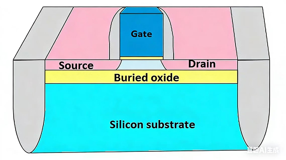 Η παρουσία ενός μονωτικού στρώματος SiO2 απομονώνει αποτελεσματικά το τρανζίστορ από το υποκείμενο υπόστρωμα πυριτίου. Αυτή η απομόνωση μειώνει το ανεπιθύμητο ρεύμα από το ενεργό στρώμα στο υπόστρωμα. Το ρεύμα διαρροής αυξάνεται με τη θερμοκρασία, βελτιώνοντας έτσι σημαντικά την αξιοπιστία του τσιπ σε περιβάλλοντα υψηλής θερμοκρασίας.
