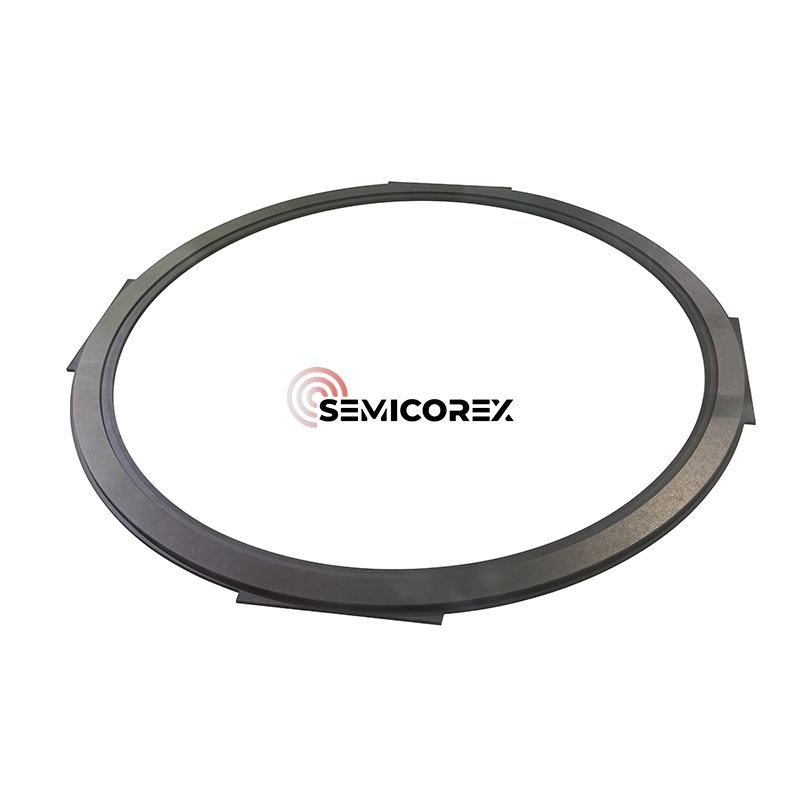 Ο δακτύλιος ακμής Semicorex SIC, που κατασκευάζεται μέσω καρβιδίου πυριτίου χημικών ατμών (CVD), αντιπροσωπεύει μια κρίσιμη πτυχή της κατασκευής ημιαγωγών, διαδραματίζοντας συγκεκριμένα σημαντικό ρόλο στη διαδικασία κατασκευής σε θαλάμους χάραξης πλάσματος. Ο δακτύλιος ακμής βρίσκεται γύρω από την εξωτερική άκρη του ηλεκτροστατικού τσοκ (ESC) κατά τη διάρκεια της διαδικασίας χάραξης στο πλάσμα και έχει τόσο αισθητική όσο και λειτουργική σχέση με την διεργασία με το δίσκο.