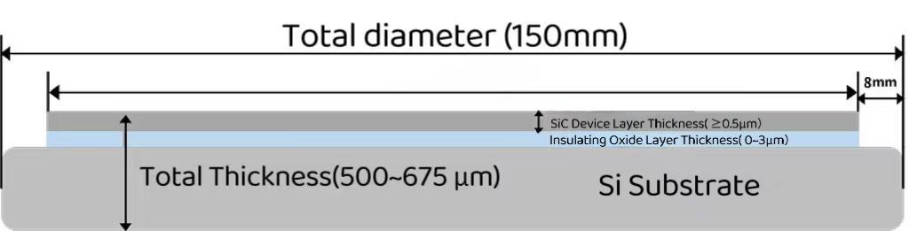 Η γκοφρέτα SICOI, μια σύνθετη γκοφρέτα καρβιδίου του πυριτίου-μονωτή που κατασκευάζεται με ειδική τεχνική, χρησιμοποιείται κυρίως σε φωτονικά ολοκληρωμένα κυκλώματα και μικροηλεκτρομηχανικά συστήματα (MEMS). Αυτή η σύνθετη δομή συνδυάζει τις εξαιρετικές ιδιότητες του καρβιδίου του πυριτίου με τα χαρακτηριστικά απομόνωσης των μονωτών, ενισχύοντας σημαντικά τη συνολική απόδοση των συσκευών ημιαγωγών και παρέχοντας ιδανικές λύσεις για ηλεκτρονικές και οπτοηλεκτρονικές συσκευές υψηλής απόδοσης.