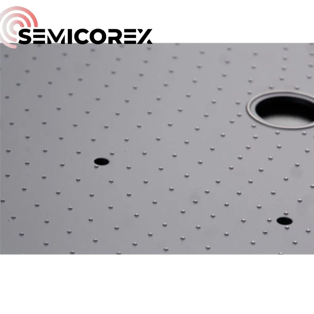 Η επιφάνεια του Semicorexκαρβίδιο του πυριτίουΤα τσοκ καρφίτσας είναι διατεταγμένα με πολυάριθμα εξογκώματα μεγέθους micron. Η περιοχή επαφής ελαχιστοποιείται επειδή η επαφή με το πίσω μέρος της γκοφρέτας λαμβάνει χώρα μόνο στα χτυπήματα, γεγονός που αποφεύγει αποτελεσματικά τις περιττές γρατσουνιές, τη μόλυνση από σωματίδια και τα σημάδια.