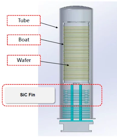 Semicorex στερεόπτερύγια καρβιδίου του πυριτίουεγκαθίστανται συνήθως ως εξαρτήματα θερμομόνωσης μέσα σε κατακόρυφους σωλήνες κλιβάνου εξοπλισμού θερμικής επεξεργασίας ημιαγωγών, όπως φούρνοι ανόπτησης RTP και κλίβανοι διάχυσης. Τα πτερύγια στερεού καρβιδίου του πυριτίου Semicorex μπορούν να ρυθμίσουν αποτελεσματικά την κατανομή θερμοκρασίας σε κλιβάνους υψηλής θερμοκρασίας και να ελαχιστοποιήσουν τη θερμική ζημιά στα εξαρτήματα στεγανοποίησης της πόρτας που προκαλούνται από υψηλές θερμοκρασίες. Σε συνθήκες λειτουργίας υγρής οξείδωσης, τα πτερύγια στερεού καρβιδίου του πυριτίου Semicorex μπορούν να χρησιμοποιηθούν για την αποτελεσματική πρόληψη αρνητικών επιπτώσεων στα αποτελέσματα της διαδικασίας και στις συσκευές ημιαγωγών που προκαλούνται από συμπύκνωση υδρατμών σε σχετικά χαμηλές θερμοκρασίες διεργασίας.